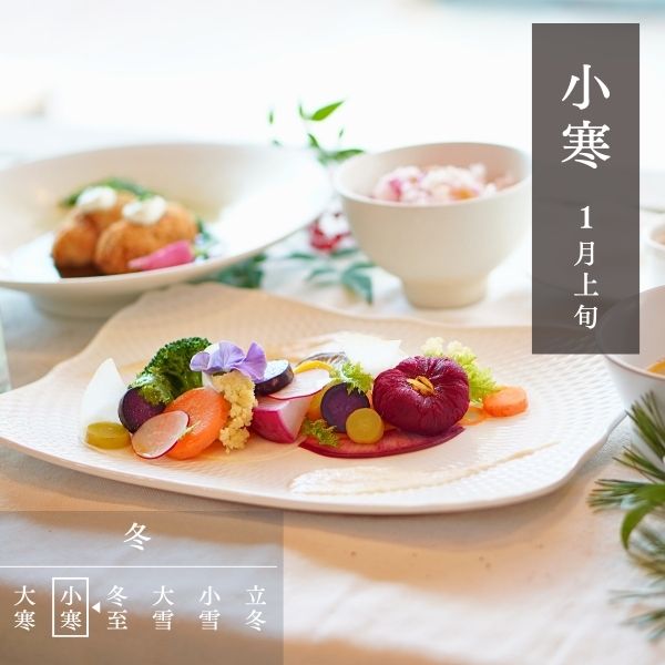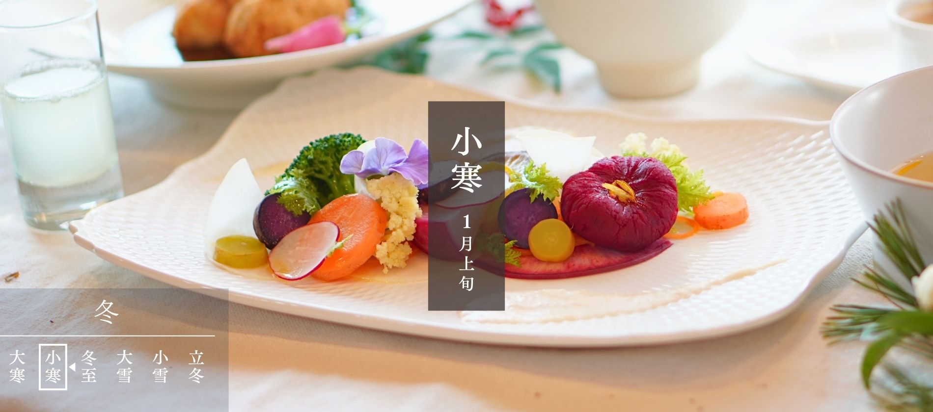 新しい一年が動き出す頃、二十四節気は「小寒」を迎えます。寒さが深まるこの時季は、身体と心を整え、これからの一年の土台をつくる大切な節目。百春饗【小寒】では、野津町・臼杵の有機冬野菜の力を生かし、巡りを促し、内側から温める献立をご用意しました。新年の始まりに、土地の恵みとともに、静かに健やかな一年を寿ぐ食の時間をお楽しみください。