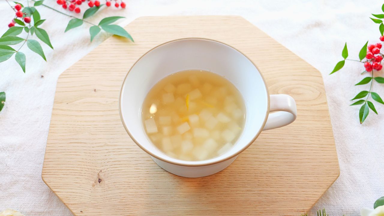 新年の静かな朝を思わせる、澄んだ味わいの一杯。冬の大根は消化を助け、身体を温める力を持つ、寒の時季に欠かせない野菜です。そこに柚子の香りを添えることで、気の巡りを整え、心まで晴れやかに。お正月のごちそうで重くなった身体を、そっとリセットしてくれるような存在です。小寒の冷え込みの中で味わうからこそ、そのやさしさが際立つ、新年の始まりにふさわしい滋味深いスープです。